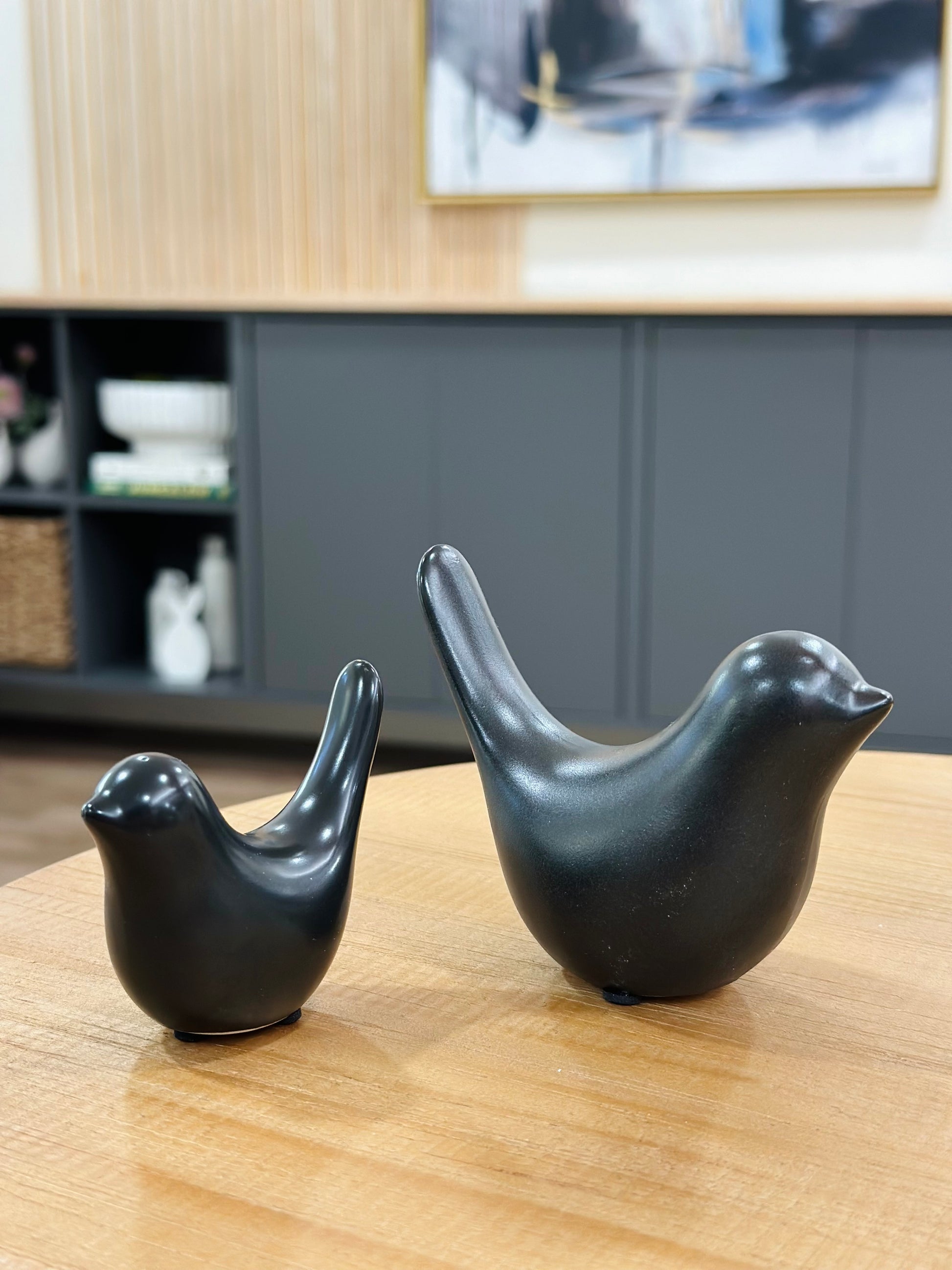 This sleek black bird duo brings grounded elegance and organic charm to any shelf or tabletop. With clean lines and a minimalist silhouette, they quietly echo the beauty of nature—adding balance, warmth, and intention to your space.