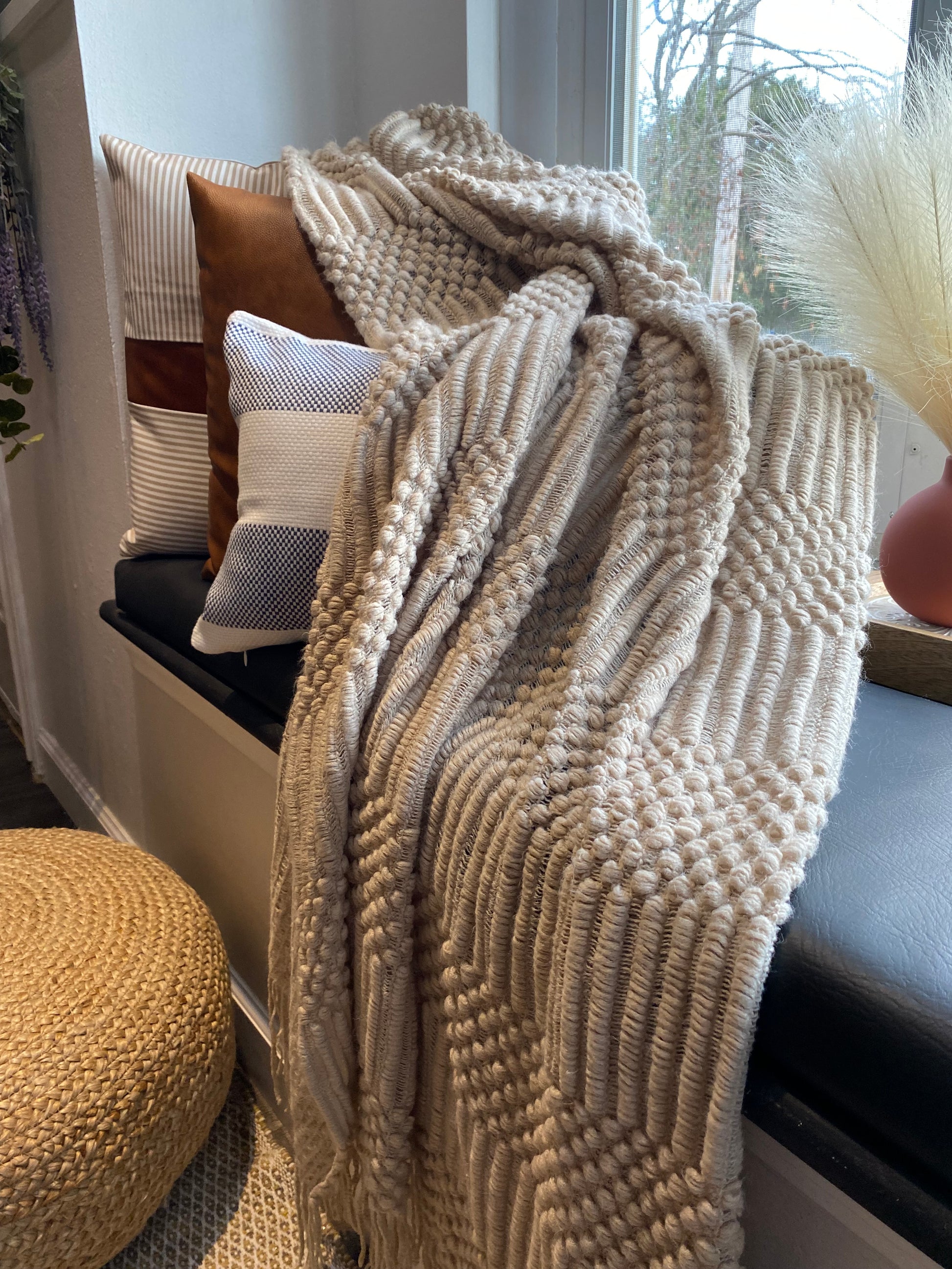 Add a touch of rich navy and effortless texture to your sofa, bed, or favorite chair with the Haley lumbar pillow cover. Crafted to bring a subtle pop of color and artisanal charm, it’s the perfect accent for layering and styling your space with soul.