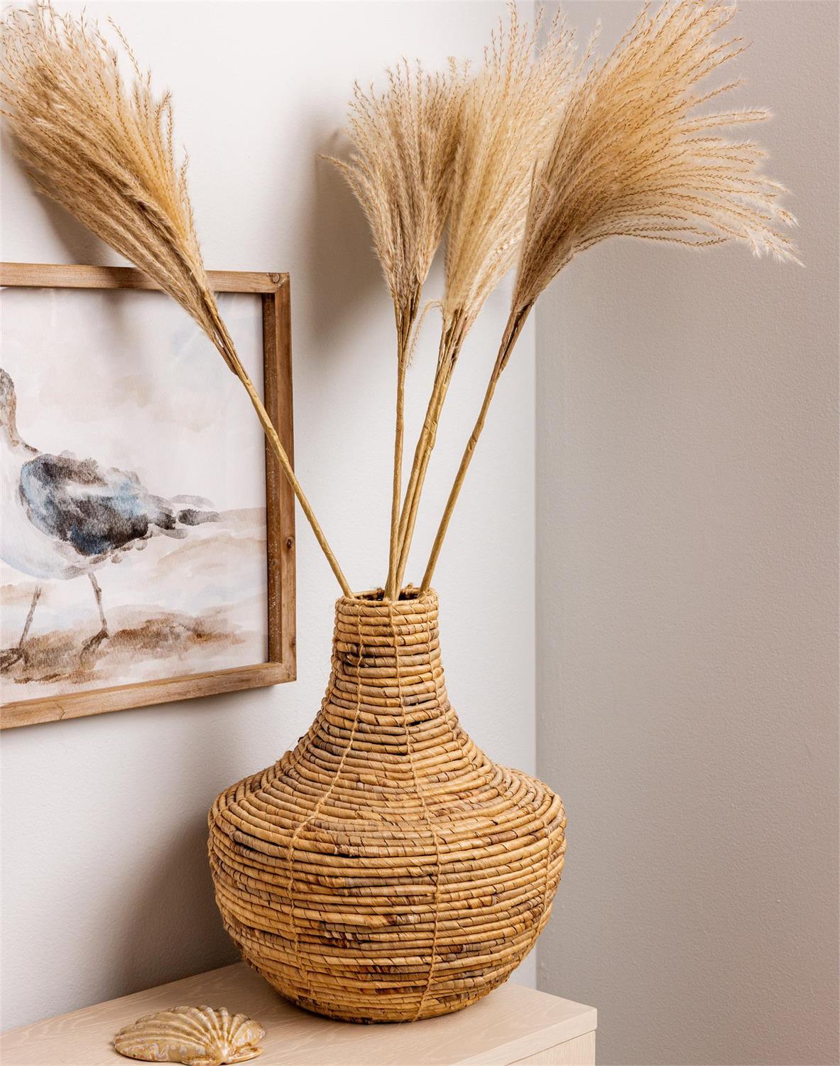 Handcrafted from natural water hyacinth, each curve and coil is infused with the warmth of artisan hands in this 15' vase. Ideal for fresh blooms, dried florals, or simply as a soulful accent, it brings texture, earthiness, and a touch of tradición to your space.